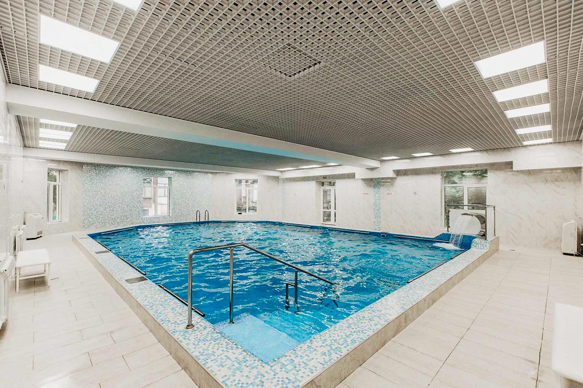 Одним из популярных мест для занятий спортом и просто отдыха является бассейн в санатории «Узбекистан» в г. Кисловодске. Вода мягко воздействует на организм, не оказывает большой нагрузки на позвоночник, суставы, способствует общему оздоровлению и физическому развитию. Помещение бассейна новое, отремонтированное, чистое, просторное и светлое. Дизайн соответствует последним современным тенденциям. Вода чистая, голубая. Купание в бассейне абсолютно безопасно, так как функционирует трехступенчатая система очистки. Габариты бассейна 8 на 12 метров.